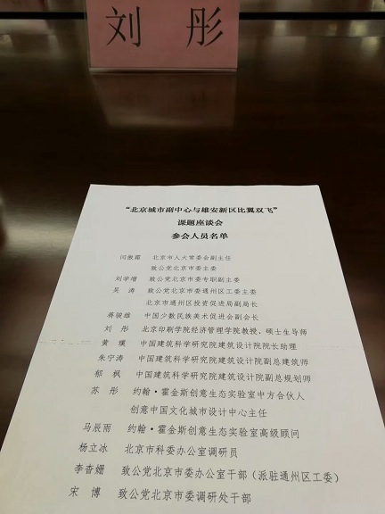 2017年11月24日,蒋骏雄院长、刘彤教授作为课题组专家参加"北京城市副中心与雄安新区比翼双飞"课题座谈会。